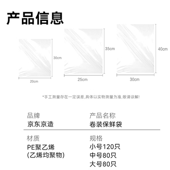 京东京造 保鲜袋食品级组合装大号80+中号80+小号120 加厚塑料袋【280只】