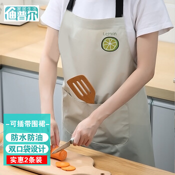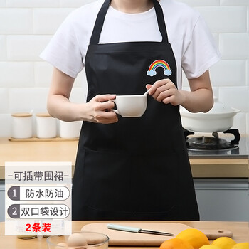 迪普尔 围裙【2条装】女防水防油围裙巾围腰厨房餐厅工作服做饭无袖罩衣