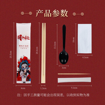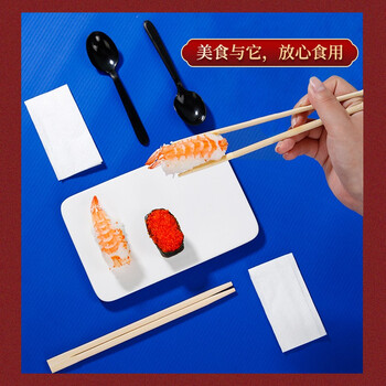 SHUANG YU一次性筷子四件套50包勺子外卖打包筷子勺子牙签纸巾餐具套装