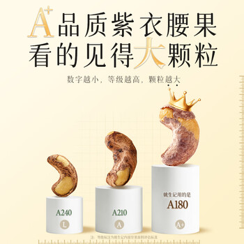 姚生记A180大颗粒紫皮腰果仁500g 越南腰果休闲零食 每日坚果炒货干果仁