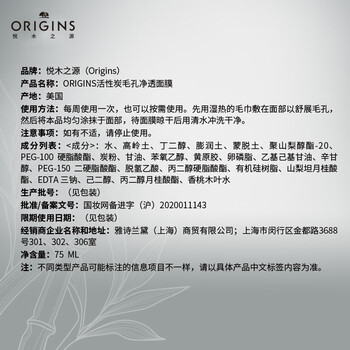 悦木之源(Origins)活性炭毛孔净透面膜75ml