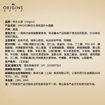 悦木之源(Origins)畅饮水润补水保湿面膜75ml
