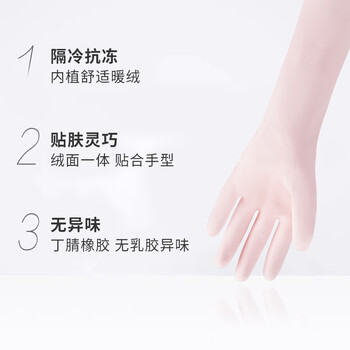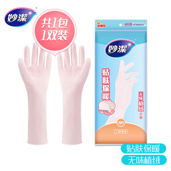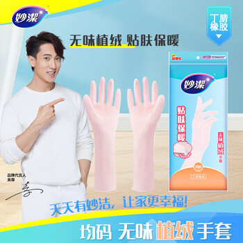 妙洁 无味植绒手套 丁腈橡胶 1双装 均码 无异味 暖绒舒适贴肤保暖