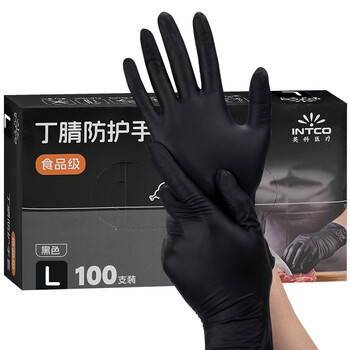 家庭清洁/纸品---清洁用具---手套/鞋套/围裙英科医疗(INTCO)一次性黑色丁腈防护手套耐用型