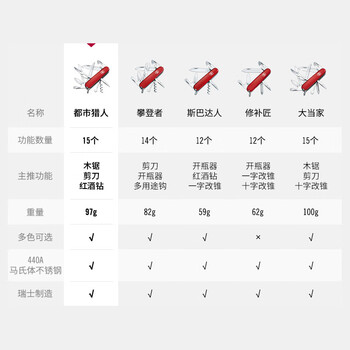 维氏瑞士军刀都市猎人15项多功能水果刀刀折叠刀黑色1.3713.3