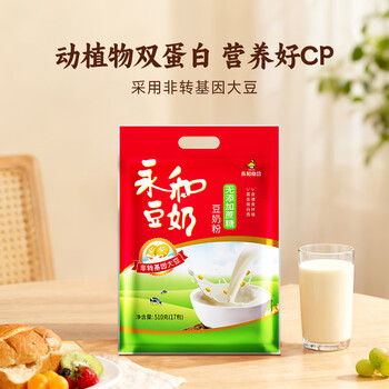 永和豆浆无添加蔗糖豆奶粉510g 30g*17小包高蛋白非转基因 即食早餐