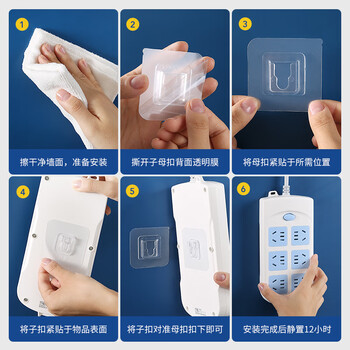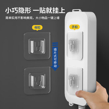 LYNN子母扣 强力粘胶贴片插排固定器路由器免钉透明无痕挂钩 10套装