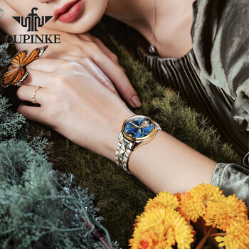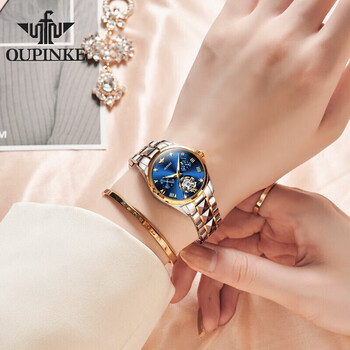 欧品客瑞士认证品牌手表女名表全自动机械轻奢月相防水生日礼物送女友