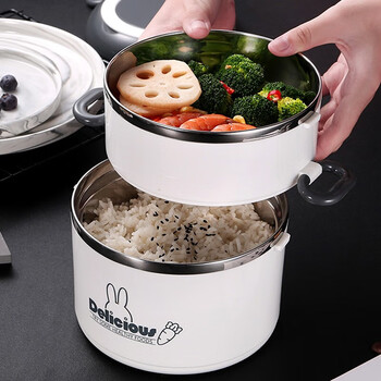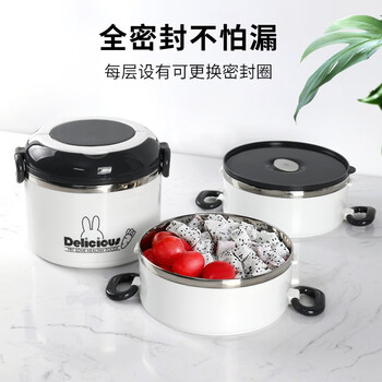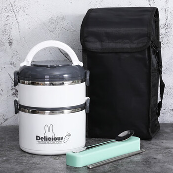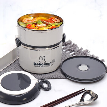 304不锈钢大容量双层饭盒,带不锈钢筷勺+保温手提袋
