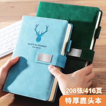 嘉然恒B5绿色大号笔记本子超厚商务记事本简约加厚大学生日记本办公文具用品皮面本子工作本会议记录本可定制