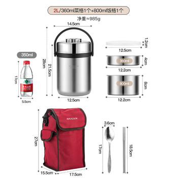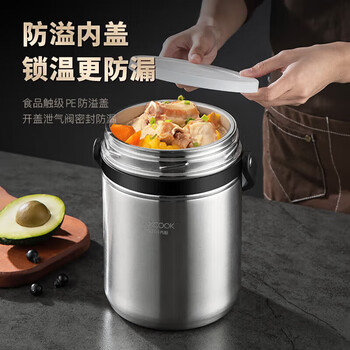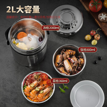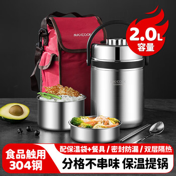 美厨(maxcook)304不锈钢保温饭盒提锅 2L真空防溢保温桶 配餐具保温袋MCTG814