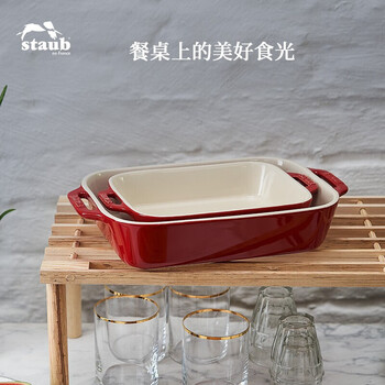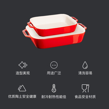 厨具---餐具---盘/碟珐宝(staub)方形烤盘两件套樱桃红