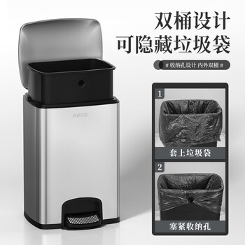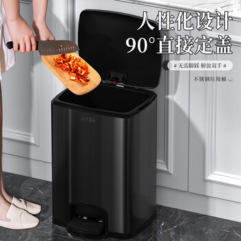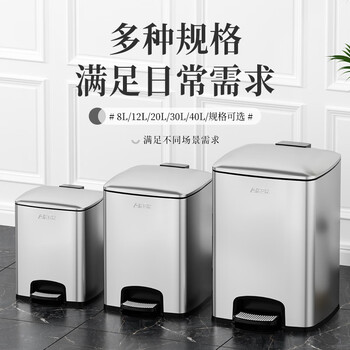 AKBK不锈钢垃圾桶脚踏式12L银色带翻盖客厅厨房办公室商用脚踩大号