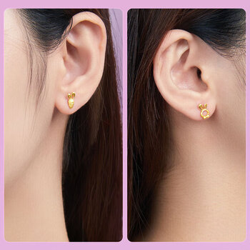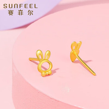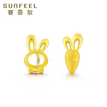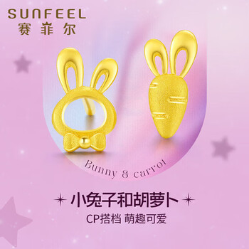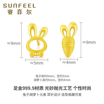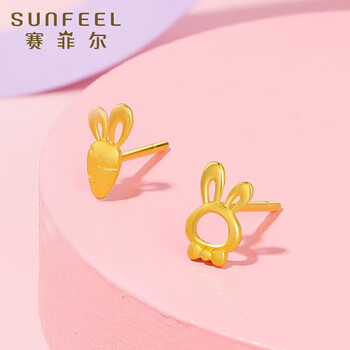 赛菲尔 黄金耳饰足金999.9生肖卡通兔子胡萝卜耳钉养耳棒 一对 约1.05克