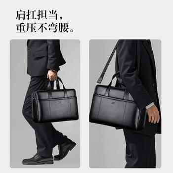 七匹狼(SEPTWOLVES)公文包男士头层牛皮商务单肩斜挎大容量15.6英寸电脑手提包节日礼