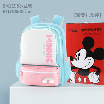 迪士尼(Disney)儿童书包小学生米奇1-3年级男女孩双肩送礼背包SM11953蓝粉色