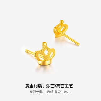 周六福皇冠黄金耳钉女足金999耳饰生日礼物计价AC091143 一对 约1.3g