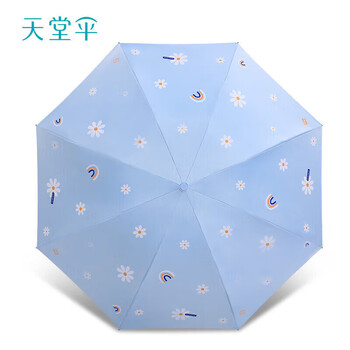 天堂 防紫外线晴雨伞三折黑胶防晒太阳伞遮阳伞57*8骨 云裳冰川蓝