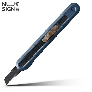 得力(deli)小号撞色设计美工刀壁纸刀裁纸刀 办公用品 尾部自带折刀器 蓝色 NS063