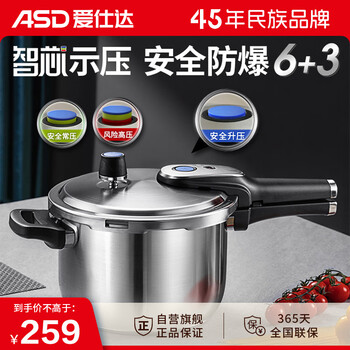 爱仕达 ASD 高压锅304不锈钢5.5L智芯显示压力锅燃气电磁炉通用YS22D1WG