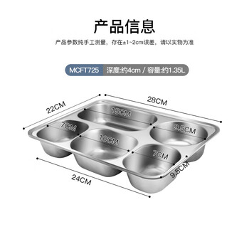 美厨(maxcook)304不锈钢餐盘饭盒 5格加深加厚分格快餐盘学生餐盒 MCFT725