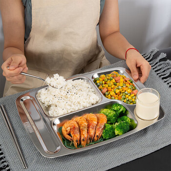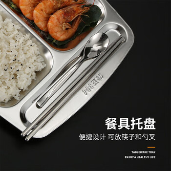 美厨(maxcook)304不锈钢餐盘饭盒分格 快餐盘学生餐盒 五格大号加厚MCFT113