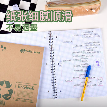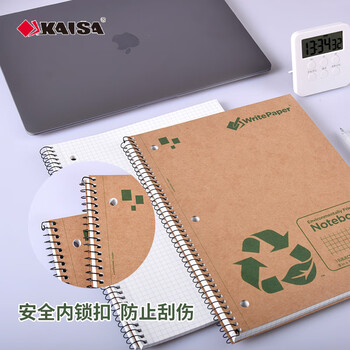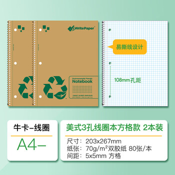 凯萨(KAISA)方格笔记本A4-/80张三孔线圈本复古牛皮纸网格本 思维导图记事本2本 (203x267mm)