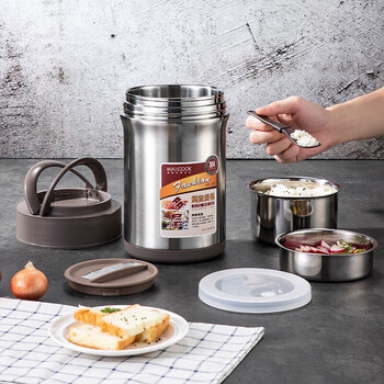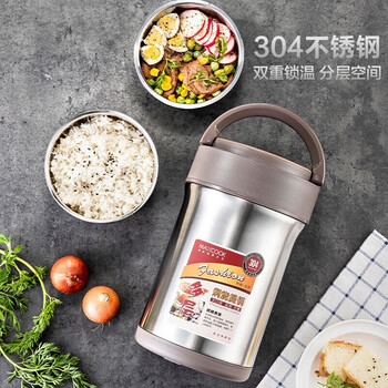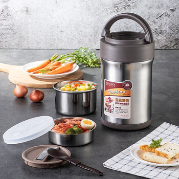 美厨(MAXCOOK)304不锈钢保温饭盒 焖烧提锅2L真空防溢保温桶 配餐具本色MCTG986