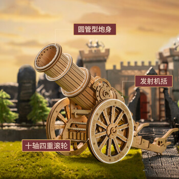 若客(ROKR)轮式加农炮 儿童玩具diy手工木质拼装模型积木立体拼图生日礼物