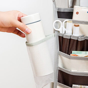 金得利9层16格课桌挂书袋收纳袋书桌挂袋大容量桌边书袋侧面收纳袋初中高中生书挂袋收纳神器米白DC1931