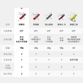 维氏瑞士军刀侦察兵14项多功能水果刀刀折叠刀红色0.8513