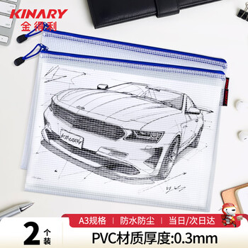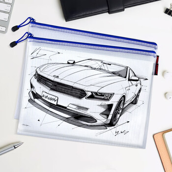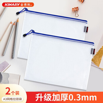 金得利2只A3/8K塑料网格合同透明文件袋拉链档案袋资料袋学生试卷收纳袋美术袋手提袋办公用品文具FB8805
