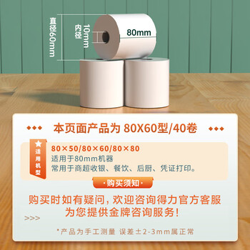 得力(deli)80*60型30米*40卷 珊瑚海热敏收银纸 京东美团外卖超市小票纸 ZS113【适配80mm机器 801P等】