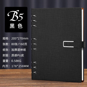 嘉然恒 活页本B5加厚搭扣笔记本子文具简约记事本商务办公会议记录本可拆卸环扣活页学生日记本定制-黑色