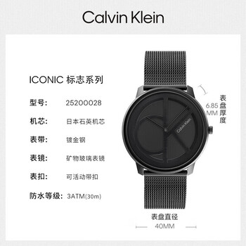Calvin KleinCK手表标志logo情侣款石英表送男友黑色25200028节日礼物