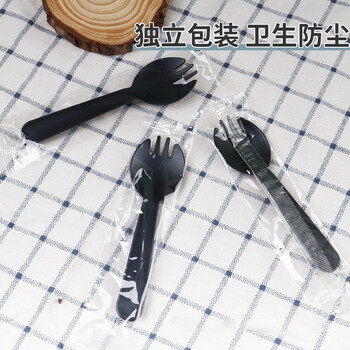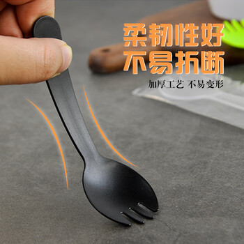 简爱生活一次性水果叉勺100支独立包装加厚蛋糕甜品叉子外卖快餐磨砂黑色
