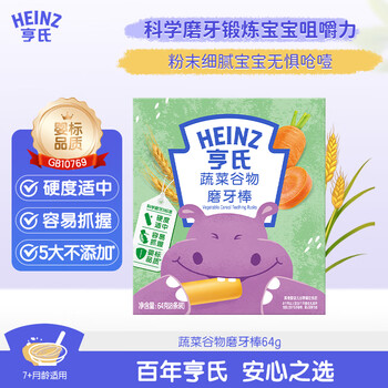 亨氏(Heinz)婴幼儿蔬菜谷物磨牙棒饼干婴儿宝宝营养零食64g独立小包装6月+