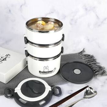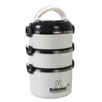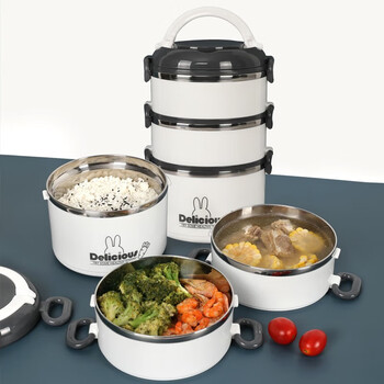贝瑟斯 304不锈钢三层饭盒 学生保温餐盒大容量上班族便当分层饭桶2.4L