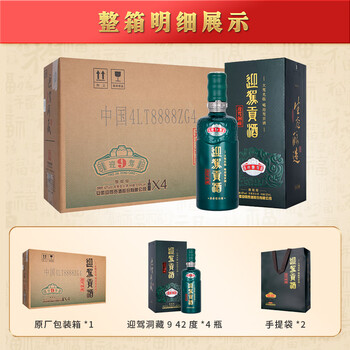 迎驾贡酒 迎驾洞藏9 42度 520ml*4瓶 整箱装、礼品袋*2