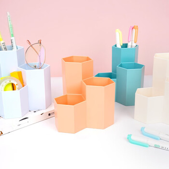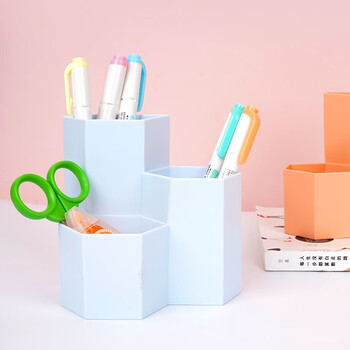 类型:笔筒/收纳 包装清单:六角形笔筒橘粉色 * 1