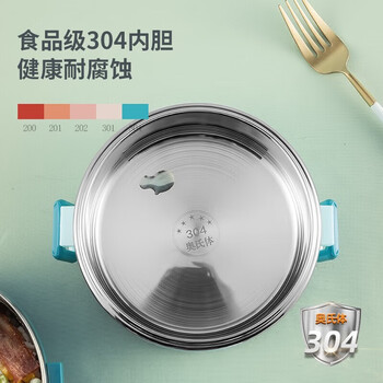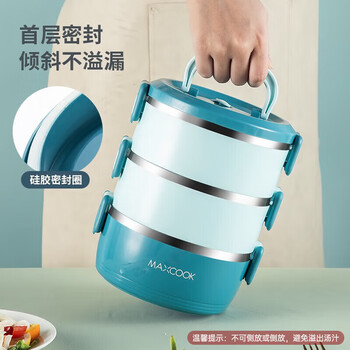 美厨(maxcook)304不锈钢保温饭盒提锅 三层学生饭盒便当盒 配餐具北欧蓝MCFT568