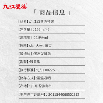 九江双蒸29.5度156ml*6杯双蒸小酒礼盒