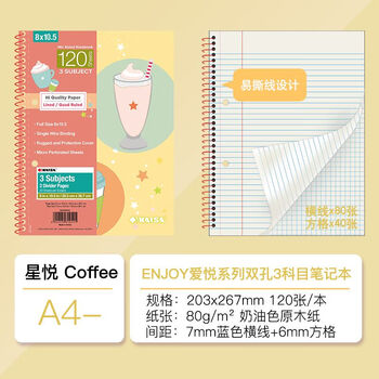 凯萨(KAISA)双孔记事本 120张三科目线圈办公记事大学生考研本子爱悦系列日记本手账本1本 咖啡奶昔