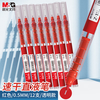 晨光(M&G)文具0.5mm红色中性笔 速干直液式走珠笔 笔记神器系列签字笔水笔 12支/盒ARPM2002