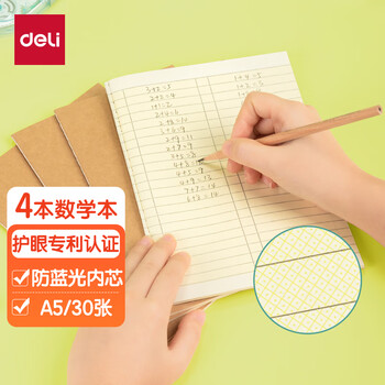 得力(deli)护眼作业本4本装A5/30张 23行数学本小学生作业本软抄本笔记本子必备 PFA530