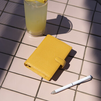 Filofax记事本便携mini小型高档笔记本手帐牛皮荔枝纹迷你活页本finsbury系列A6芥末黄022620