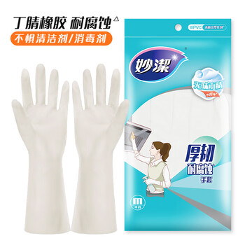 妙洁 无味厚韧手套 丁腈橡胶 1双 中号家务洗碗 新老包装随机发货