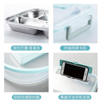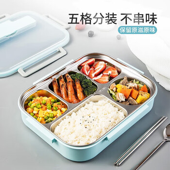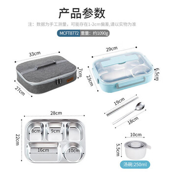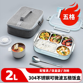 美厨(maxcook)304不锈钢饭盒 加大加深五格学生饭盒2L配餐具汤碗保温袋MCFT8772