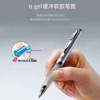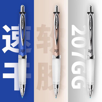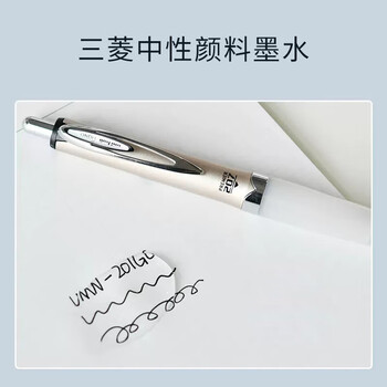 uni三菱 按动中性笔学生考试办公签字笔软胶笔握UMN-207GG 银色笔杆 黑色 1支装