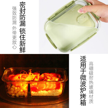 德玛斯耐热玻璃保鲜盒微波炉饭盒冰箱收纳上班族便当碗 北欧绿分隔880ml